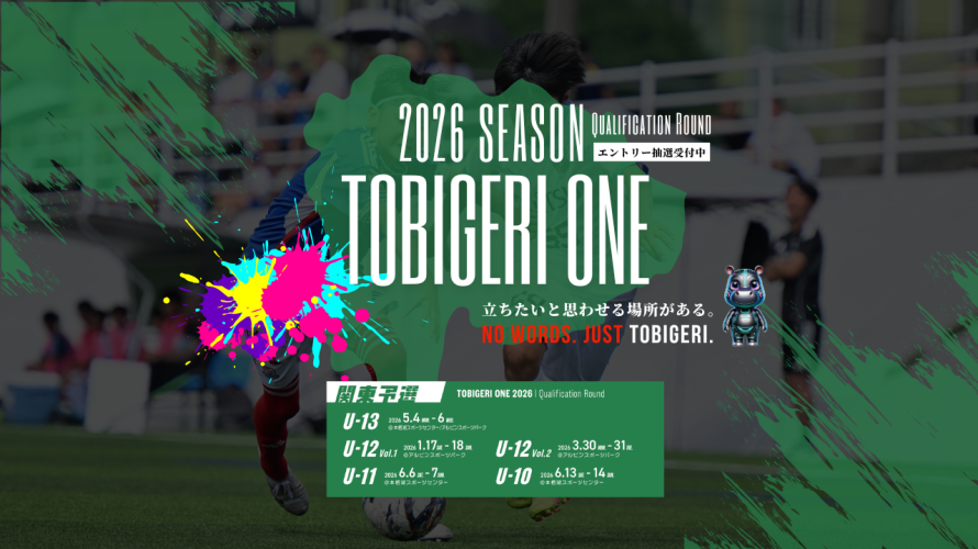 🔥U-13関東予選募集開始🔥 TOBIGERI ONE 2026 予選大会🇯🇵💫もう一度、あの舞台へ—— 申込み受付開始💫👉 https://www.tobigeri.net ——————————————— 日本最大級🇯🇵育成年代フットボールフェスTOBIGERI 🗾 予選大会優勝チームは夏の大祭典🌏【TOBIGERI ONE】出場権獲得🎫 立ちたいと思わせる場所があるNO WORDS. JUST […]
