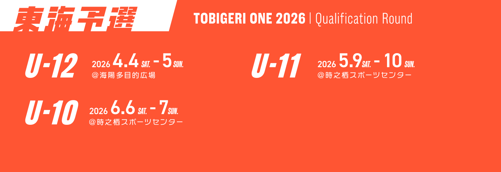 🔻U-11東海予選 2026年5月9日〜10日@時之栖スポーツセンター